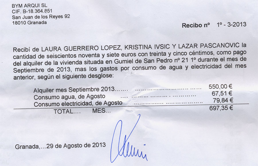 Walls were black from sweaty palms, every once in a while somebody would hit the wall with their backpack etc, so we had to pay for the painting of the apartment. Judging by the standard prices in Spain, found on the Internet, 400 euros for painting was not a bad deal. Landlady didn’t allow us to paint the apartment ourselves.