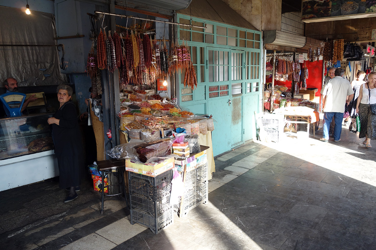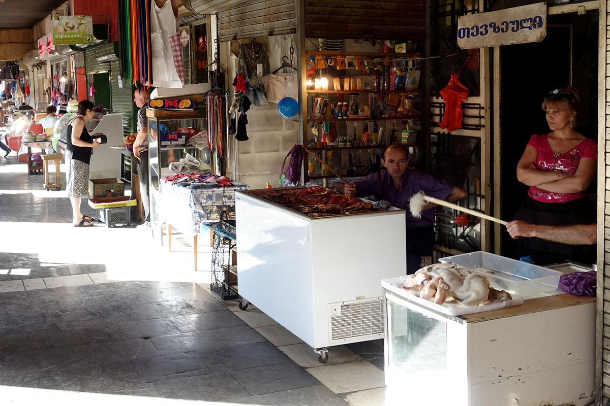 The smell of fruits is all around the streets. It's possible to buy them on improvised street stalls until midnight. The alternative is kachapuri, a cheese pie of which each region has its own version, and which is often our breakfast.