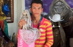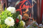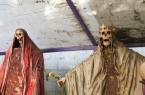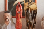 The pictures above are from Santa Muerte shrine in Tultitlan, Mexico. Founded in 2007 by Jonathan Legaria Vargas (aka "Comandante Pantera"), the shrine - marked by a 75 foot tall figure of "The Skinny Lady" - consists of a series of small pavilions devoted to Santa Muertes wearing different colored gowns, and thus bearing different powers. Red, for example, is love; gold is money; and black is protection. Each pavilion is stuffed with candles, drawings, flowers, stuffed animals, liquor, cigarettes, incense and other offerings; one pavilion is even devoted to healing broken Santa Muertes. In 2008, "Comandante Pantera" was killed by gunfire. Since then, the shrine has been lovingly run by his mother, Enriqueta Vargas. In a very touching way, this shrine to Saint Death also seems to act as a memorial for her lost son.