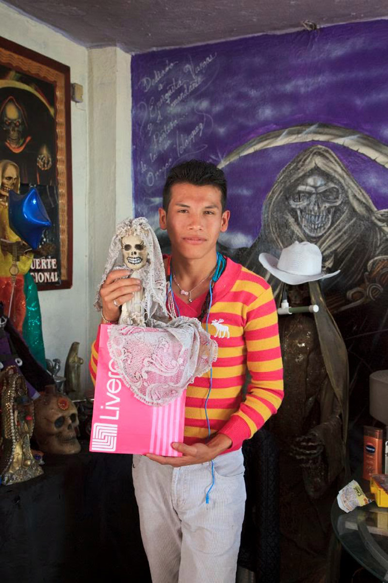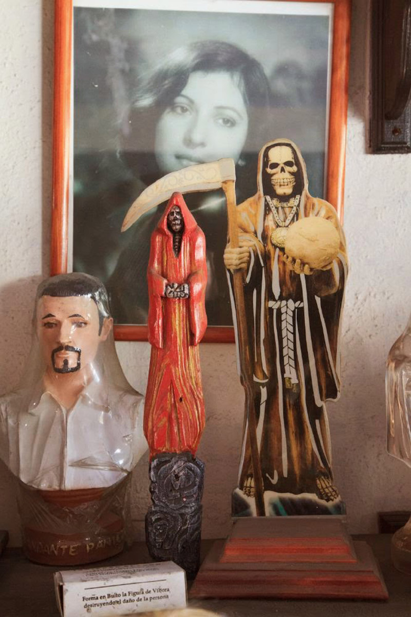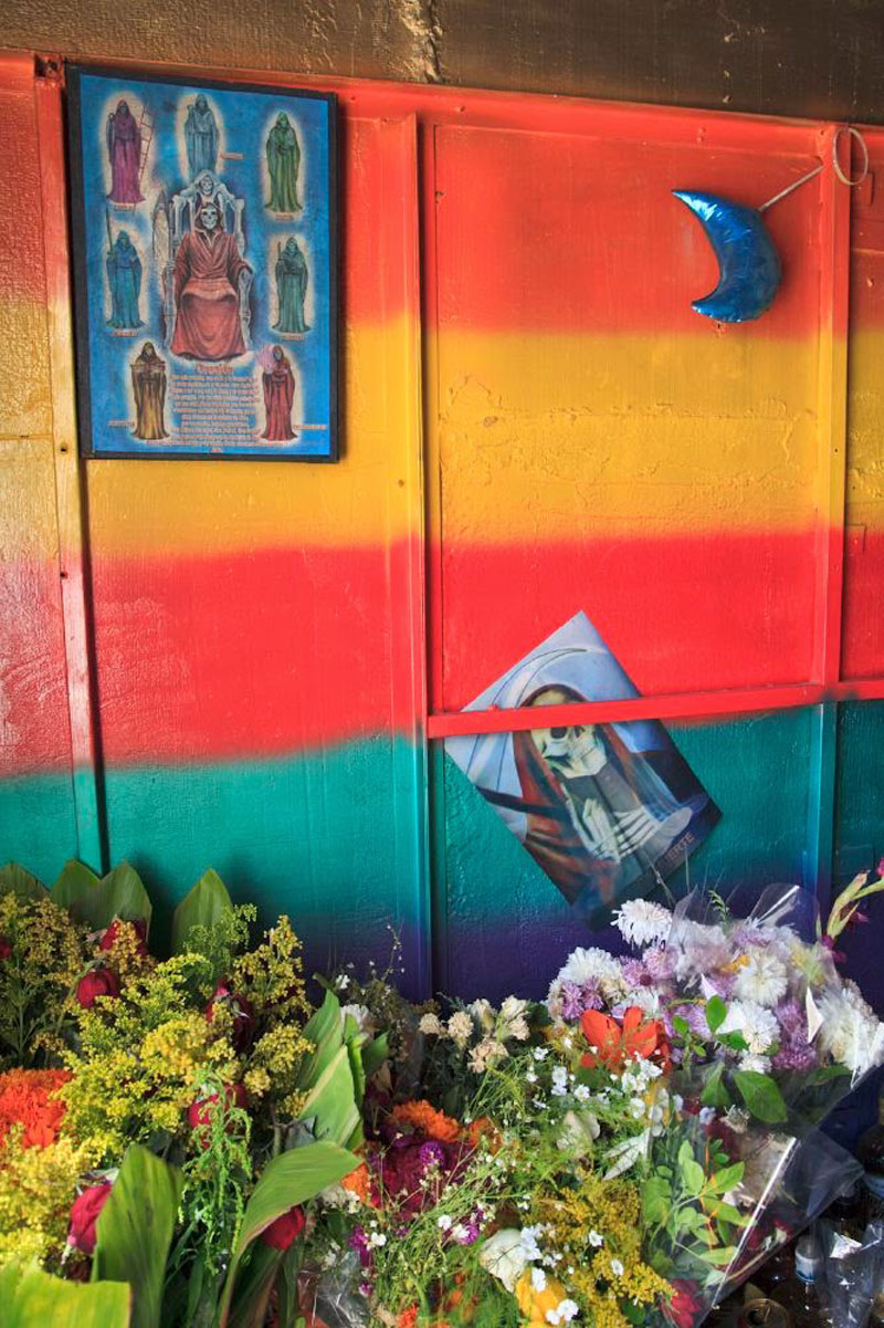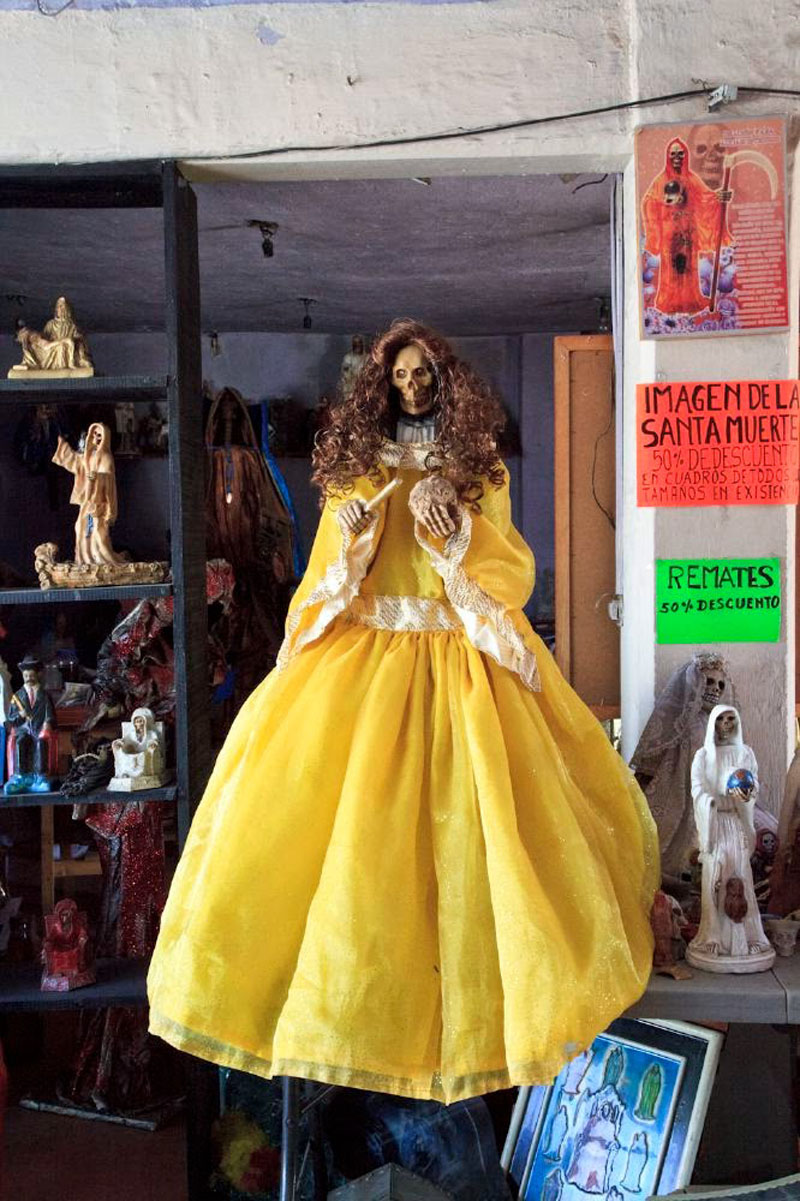 Santa Muerte - literally "Holy Death" or "Saint Death" - is the sacred figure of death personified as a woman. She is venerated by an ever growing number of people in Mexico and beyond, and is especially popular with disenfranchised members of society such as criminals, prostitutes, transvestites, homosexuals, prisoners, the very poor, and other people for whom conventional Catholicism has not provided a better or a safer life. The phenomenon is thought to have its roots in a syncretism of the beliefs of the native Latin Americans and the colonizing Spanish Catholics.