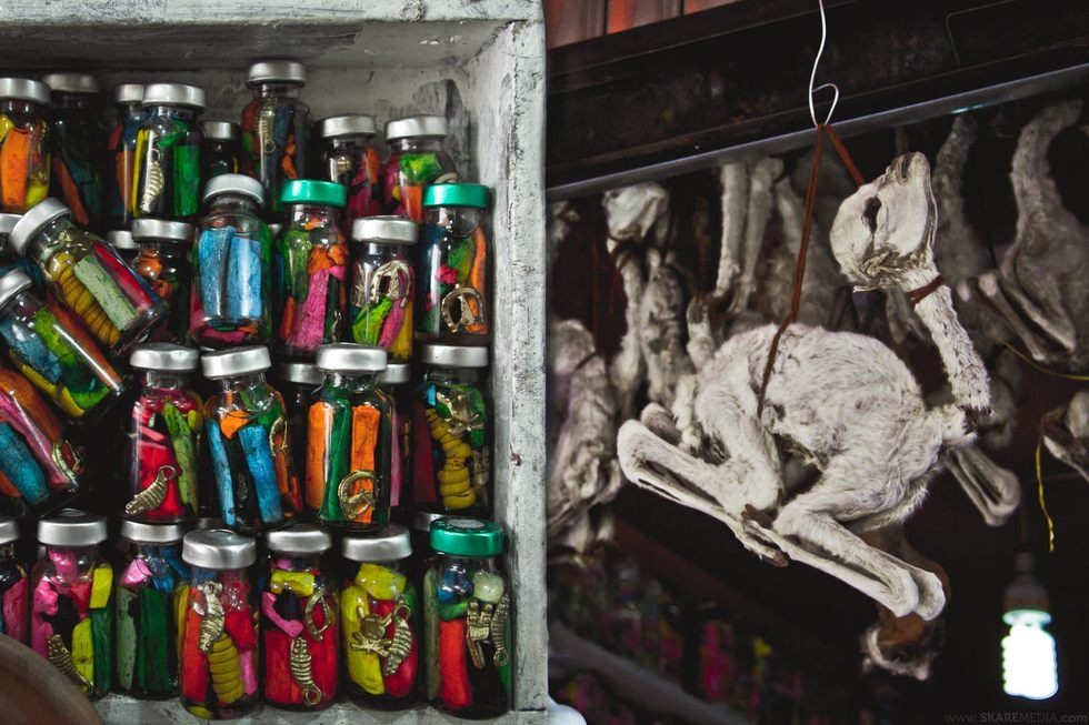 Located on Calle Jiminez and Linares between Sagarnaga and Santa Cruz in, it's impossible to miss the Witches' Market of La Paz, Bolivia, which is found right in a lively tourist area. Dozens of vendors line the streets to sell a number of strange and fascinating products and the raw ingredients used in rituals to call on the spirits that populate the Aymara world.