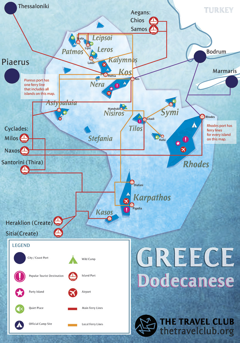 - To the Cyclades and Dodecanese islands you can get from Piraeus, Lavrio and Rafina