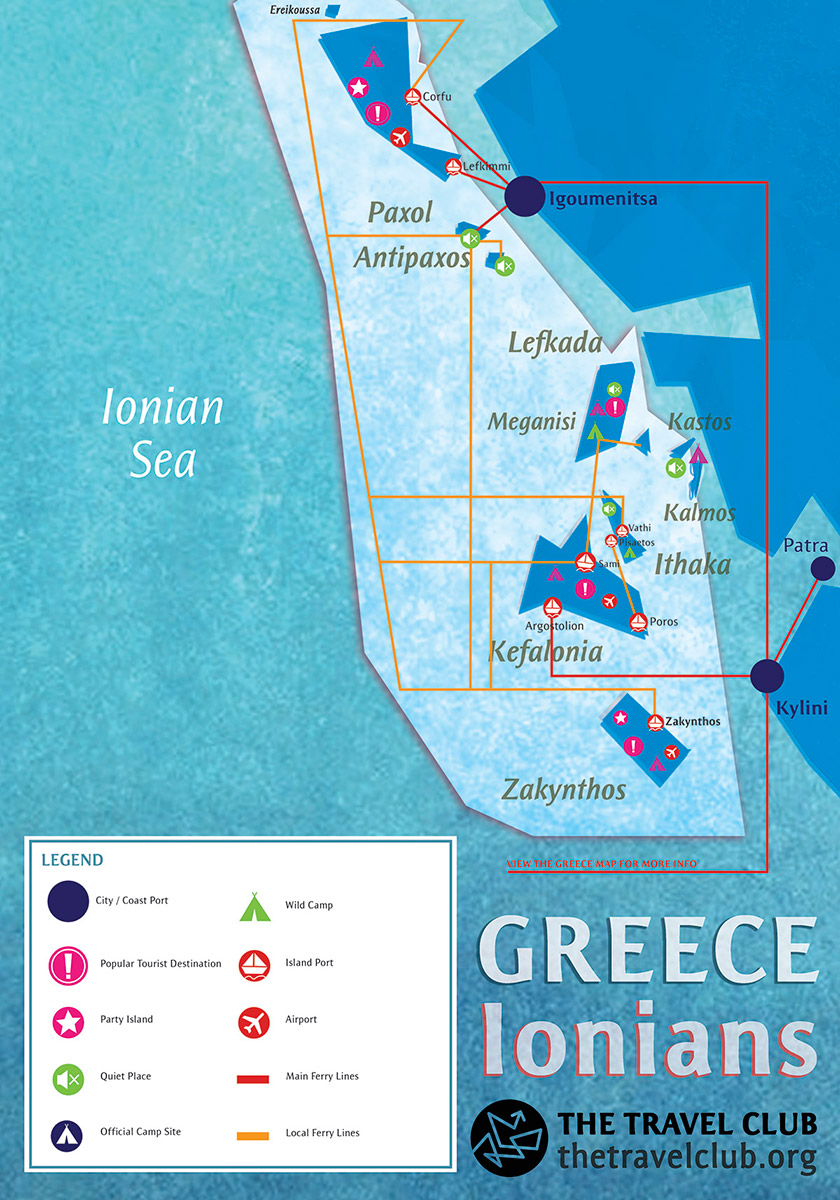 - To Ionian islands you can get from Patra, Kyllni and Igumenitsa.