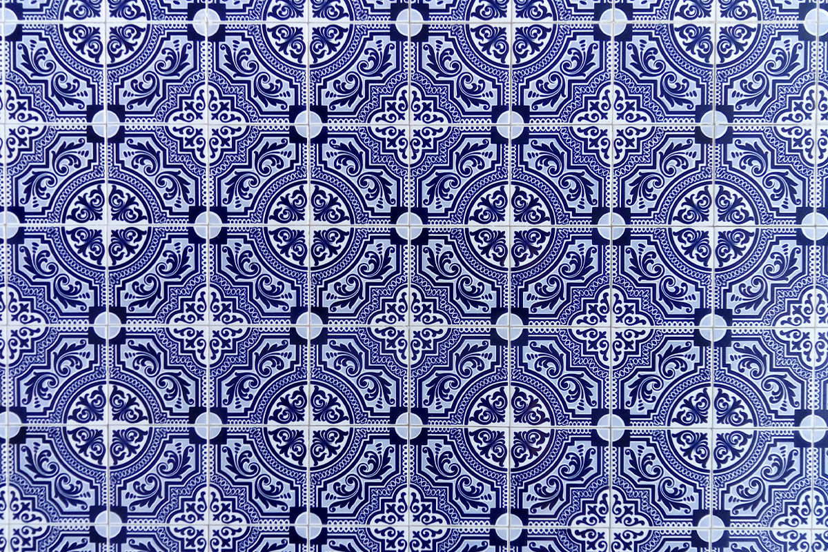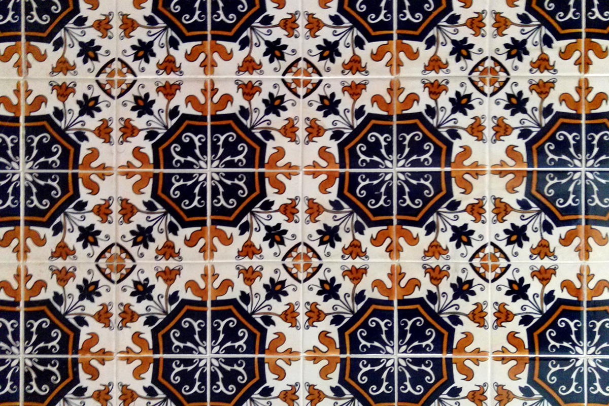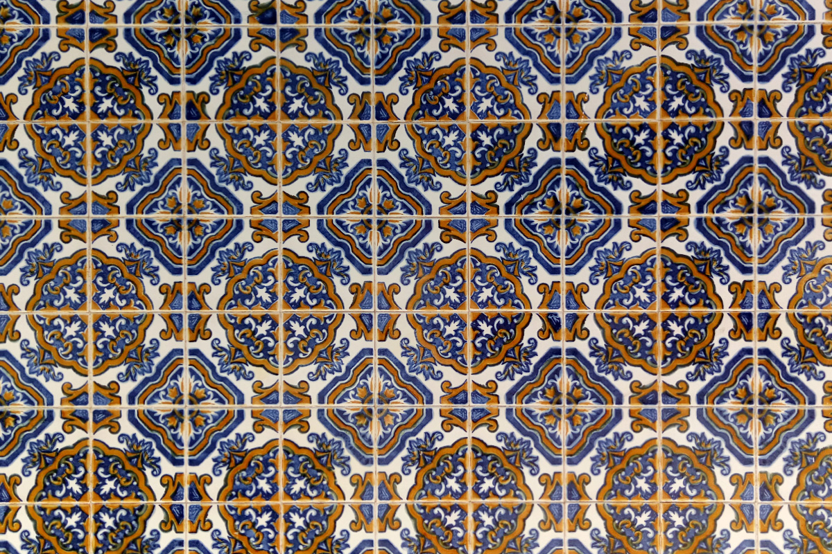 Azulejos – are colourful, glazed tiles which today we can find in Spanish and Portuguese speaking countries also in some parts of Arabic world. They were invented in Egypt, but the most of them we can find in Portugal. The origin of the name is in Arabic word al zellige (زليج) - which stands for polished or brushed stone. Facades are decorated with them as well as interior of the houses, churches, schools, restaurants, train and metro stations... They are applied on the walls, floors and even on ceilings. Clear Arab influence is seen on the pattern. Often on them we can see floral elements, different geometric shapes, all that miscible in many colours. Later, the Portuguese started adding animal and human figures.