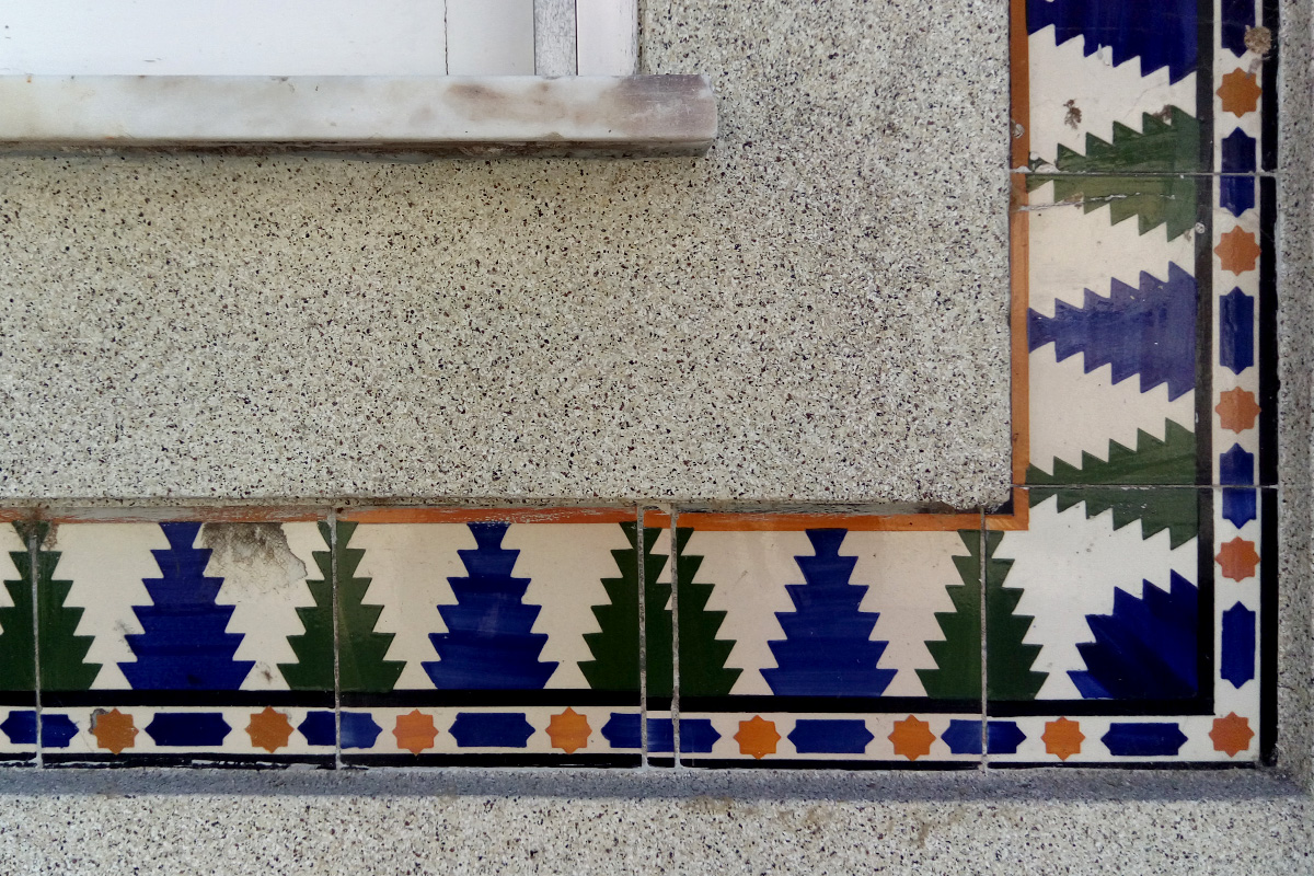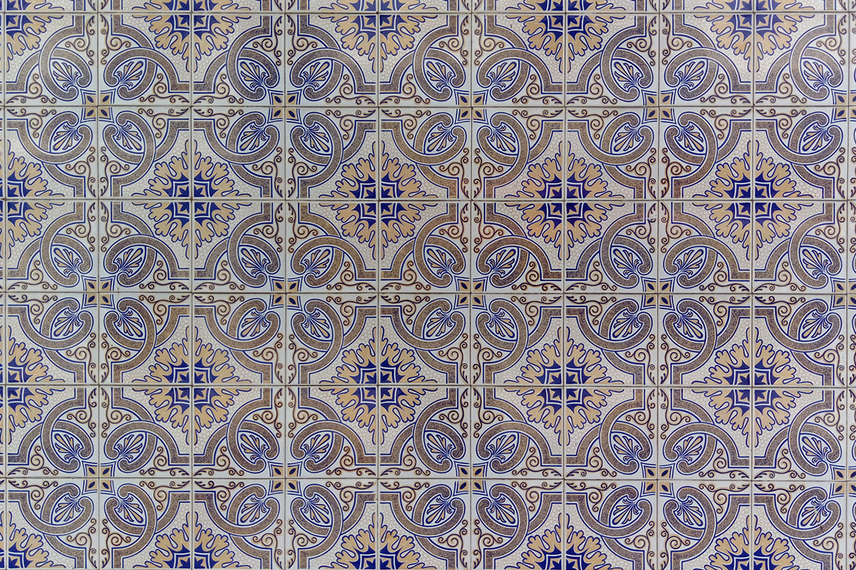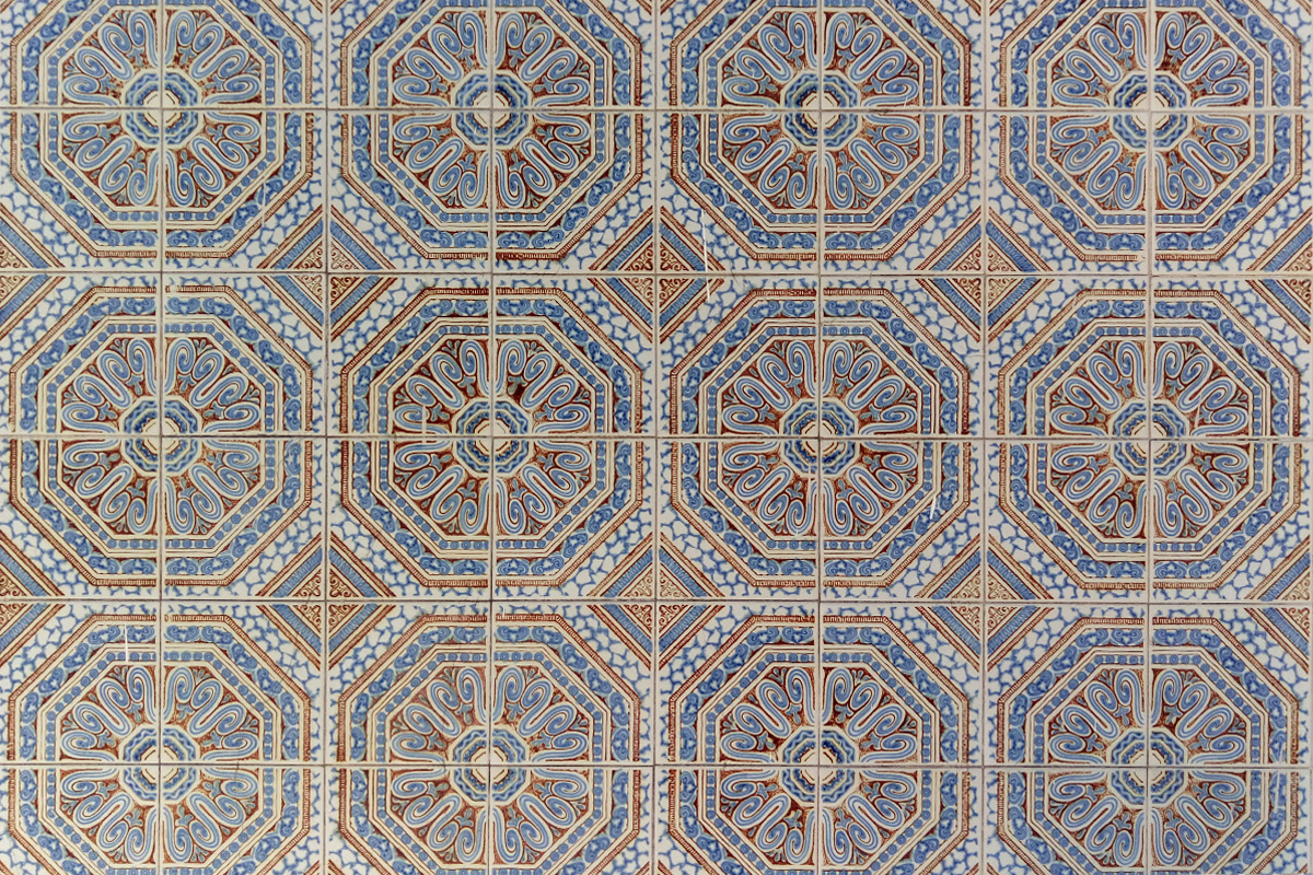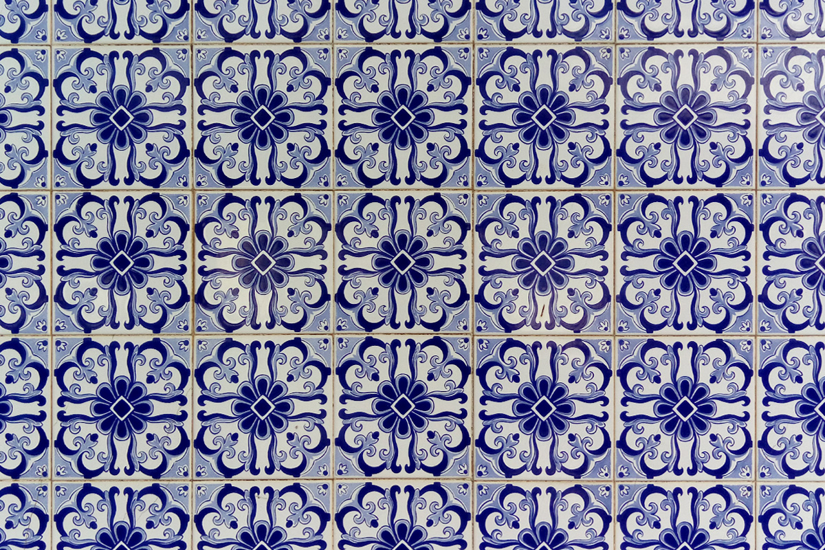 Azulejos – are colourful, glazed tiles which today we can find in Spanish and Portuguese speaking countries also in some parts of Arabic world. They were invented in Egypt, but the most of them we can find in Portugal. The origin of the name is in Arabic word al zellige (زليج) - which stands for polished or brushed stone. Facades are decorated with them as well as interior of the houses, churches, schools, restaurants, train and metro stations... They are applied on the walls, floors and even on ceilings. Clear Arab influence is seen on the pattern. Often on them we can see floral elements, different geometric shapes, all that miscible in many colours. Later, the Portuguese started adding animal and human figures.