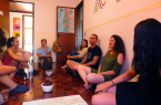 The thing that is different this year is that we implemented everyday workshops – conducted by our volunteers Jovana, Osta, Marko and Tibor, we also accept less guests (up to 12 per night) and above all - the landlord knows everything about the School and workshops so we are not afraid of being kicked out (like two years ago in Georgia). This year we protected the walls with nylon to avoid paying for the painting like in Granada.
